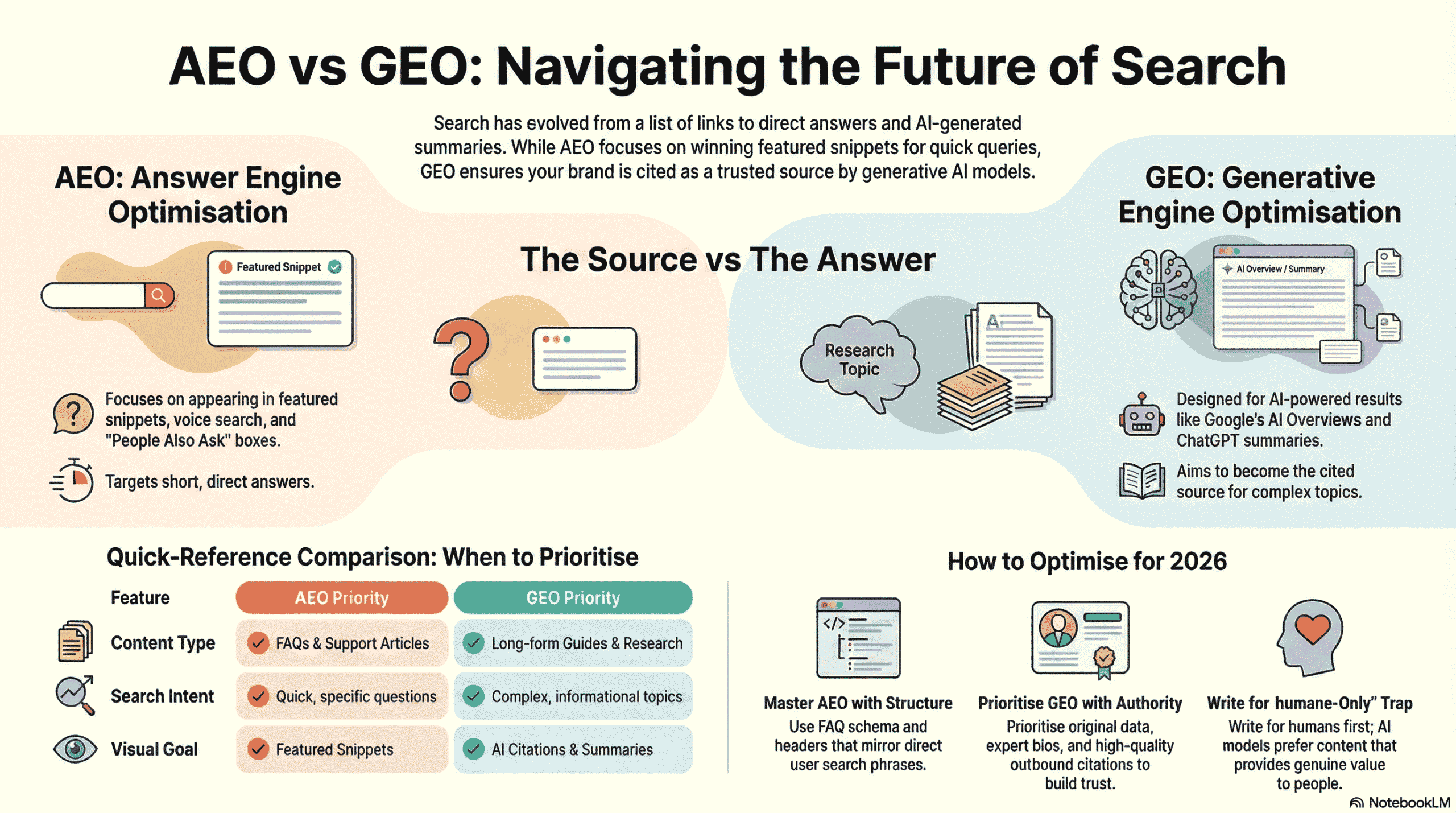 The digital future belongs to those who adapt. SEO is still essential, but it’s no longer the whole picture. By integrating AEO and GEO into your content strategy, you ensure your brand isn’t just found — it’s chosen.